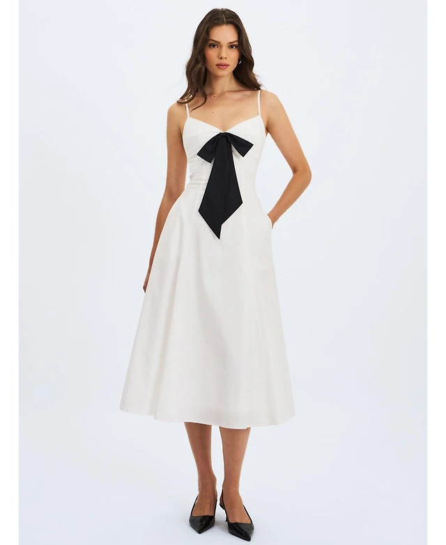 COREY LYNN CALTER Olivia Printed Stretch Cotton Square Neck Tie Shoulder Sleeveless Midi Dress