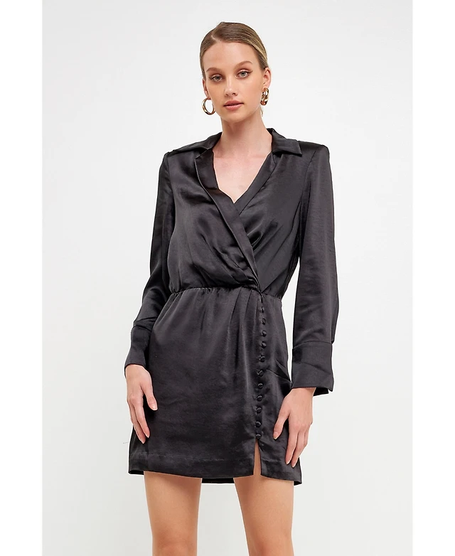 Dinner And Drinks Crepe Surplice Mini Dress