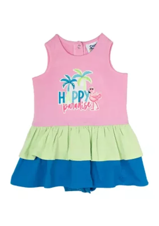 Toddler Girls Stripe Flamingo Embroidered Dress
