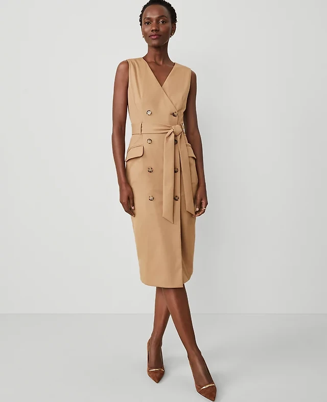 Ann Taylor The Wrap Sheath Dress in Seasonless Stretch Size 0 Perfect Camel Women's