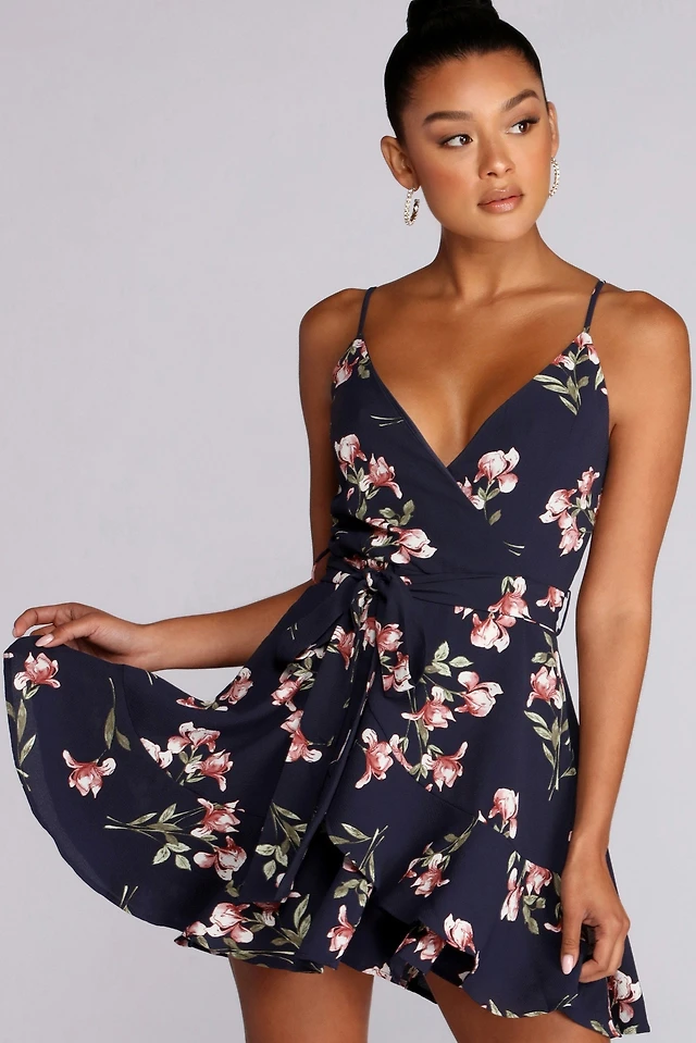 Pretty Pleats Wrap Mini Dress