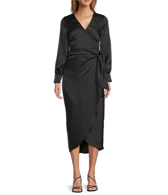 Sam Edelman Long Sleeve Satin Wrap Midi Dress