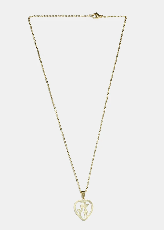 14K Yellow Gold Plated Personalized Couples Heart Pendant - 18"