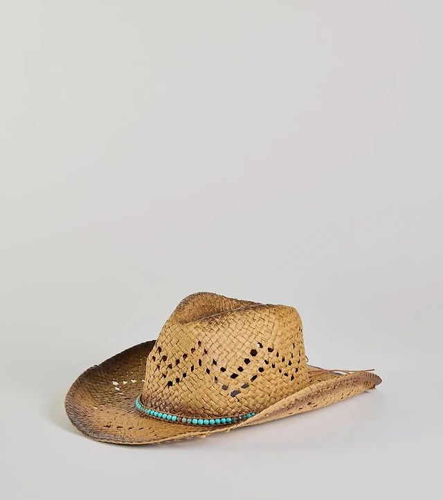 Women's Pinch Crown Paperbraid Cowboy Hat with Antique Brass Concho Band
