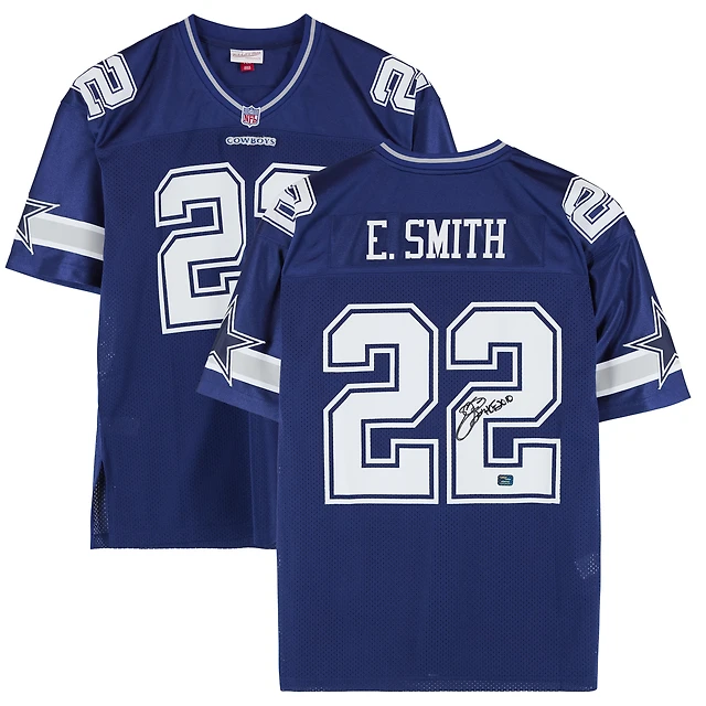 Emmitt Smith Dallas Cowboys Autographed Mitchell and Ness Blue Authentic Jersey with "HOF 2010" Inscription