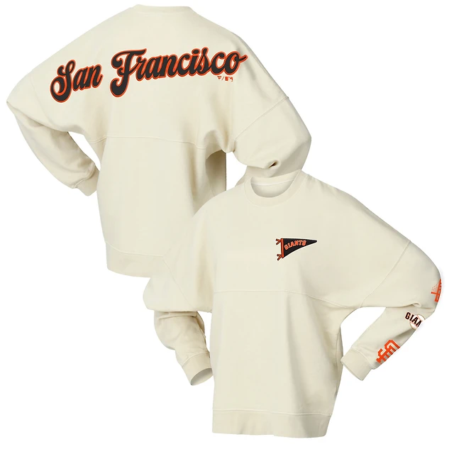 Women's Antigua Oatmeal/White Baltimore Orioles Flier Bunker Tri-Blend Pullover Sweatshirt