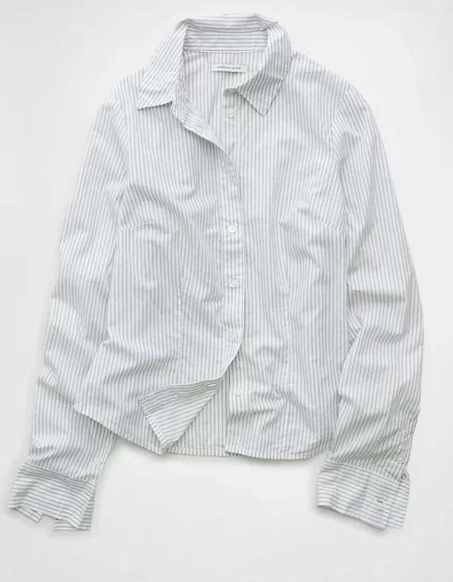 Crew Neck Long Sleeve Cutaway Hem Button Front Tee