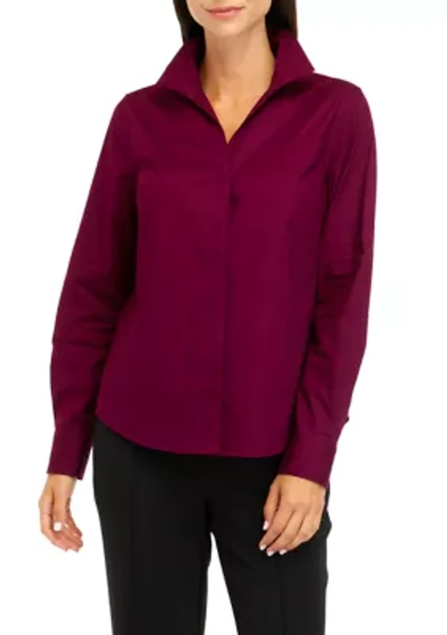 Women's Long Sleeve Button Down Shirt with Pointelle Ribbing