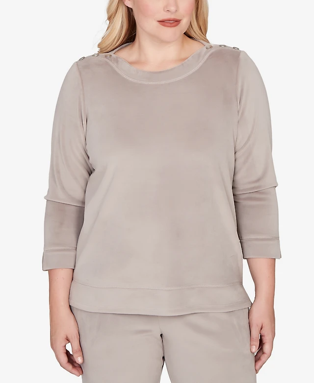 Button Sleeve Funnel Neck Tee