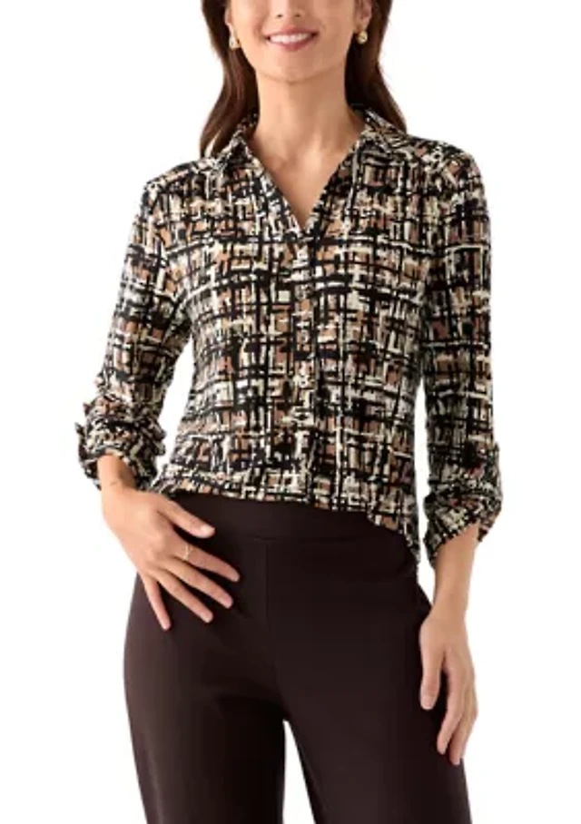 Petite Long Sleeve Button Down Shirt with Patch Pocket