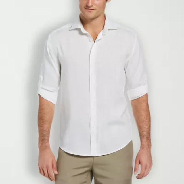 Tom Baine Men's Four-Way Stretch Solid Textured Button Down Dress Shirt