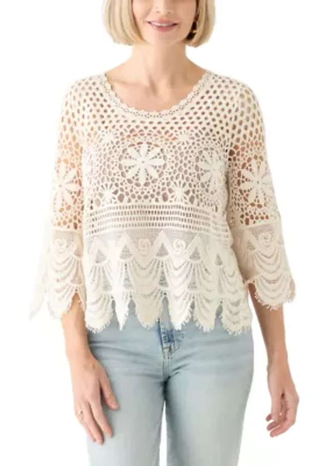 Belle Isle Ruffle-Sleeve Crochet Sweater