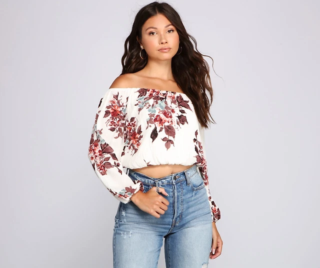 Falling For Florals Puff Sleeve Crop Top