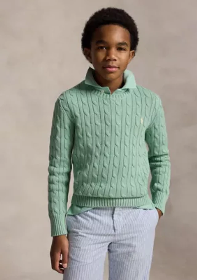 Boys 8-20 Cable-Knit Cotton Polo Sweater