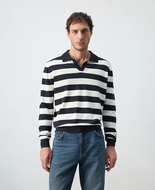 Polo Ralph Lauren Striped Cotton-Linen Polo Sweater