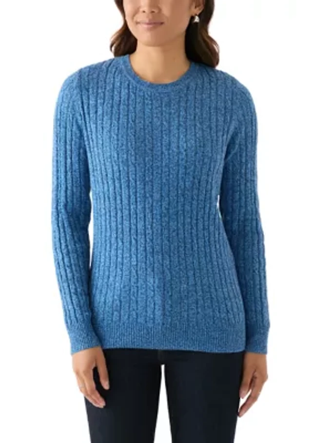 Women's Long Sleeve Cable Crew Neck Marled Sweater