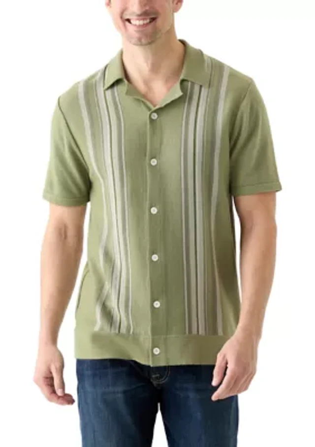 Men's Mixed Stitch Button Front Short Sleeve Sweater