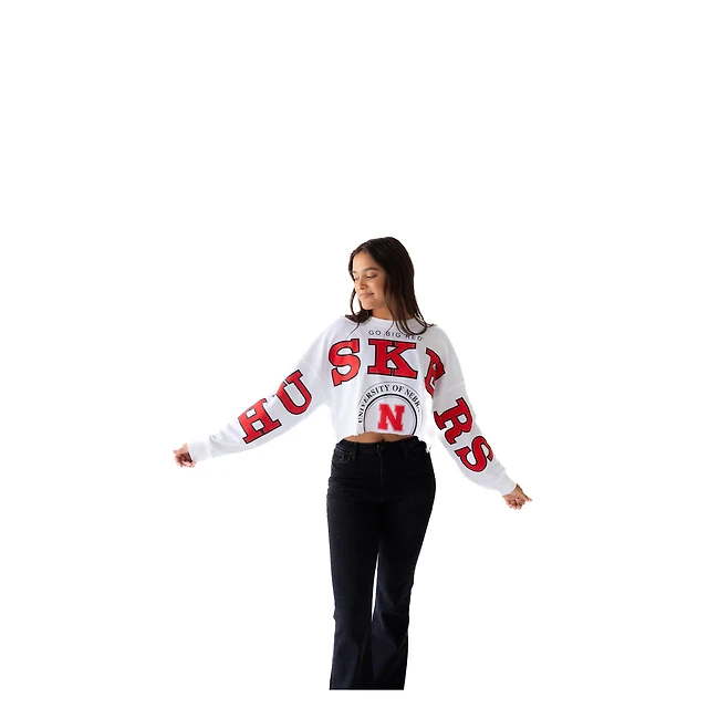 Women's Gameday Social White Nebraska Huskers Phipps Cropped Sweatshirt