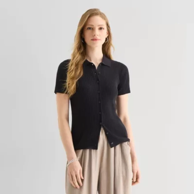 Textured Snap Mock Neck Sweater