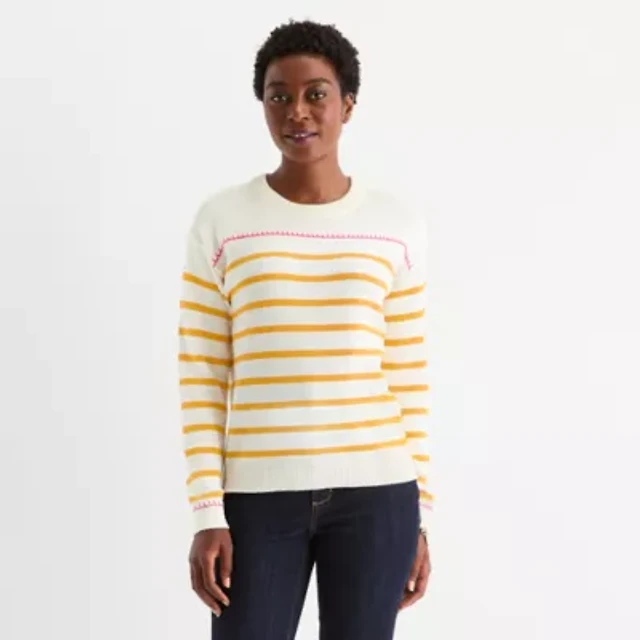 Liz Claiborne Womens Crew Neck Short Sleeve Striped Pullover Sweater