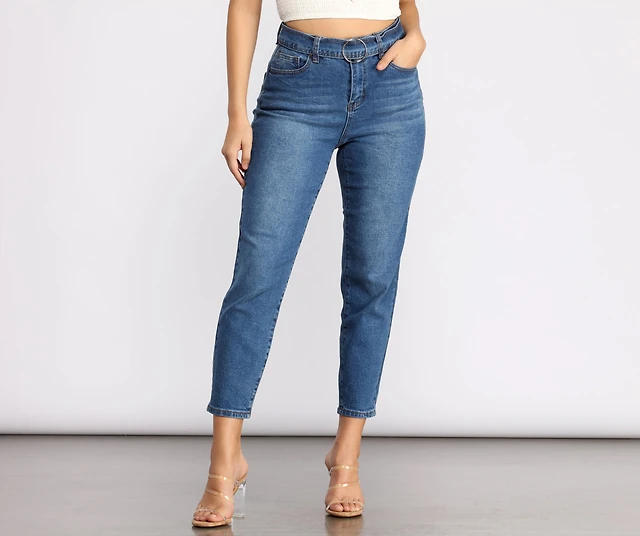 High Waisted Dark Wash FlexX Raw Hem Straight Ankle Jeans