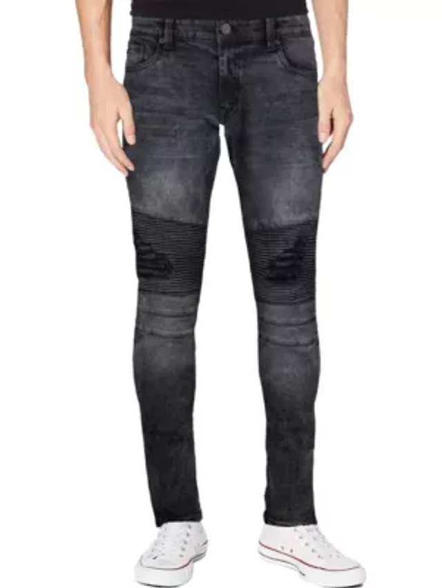 RAW X Men's Slim Tapered Flex Ripped Moto Jeans