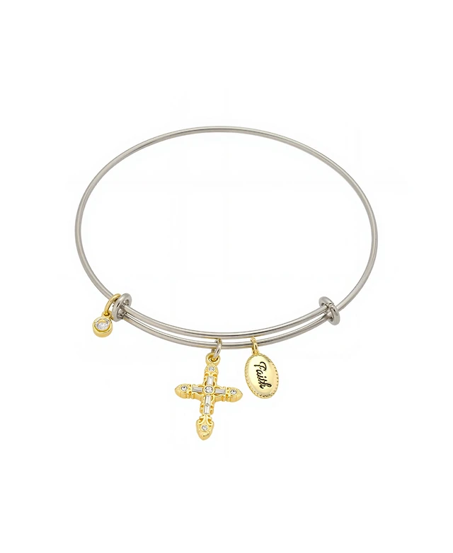 Footnotes Womens Cubic Zirconia Stainless Steel Cross Bangle Bracelet