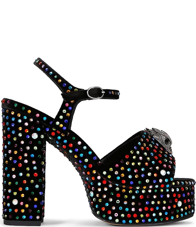 Kurt Geiger London Chelsea Crystal Embellished Logo Ornament Ankle Wrap Platform Pumps