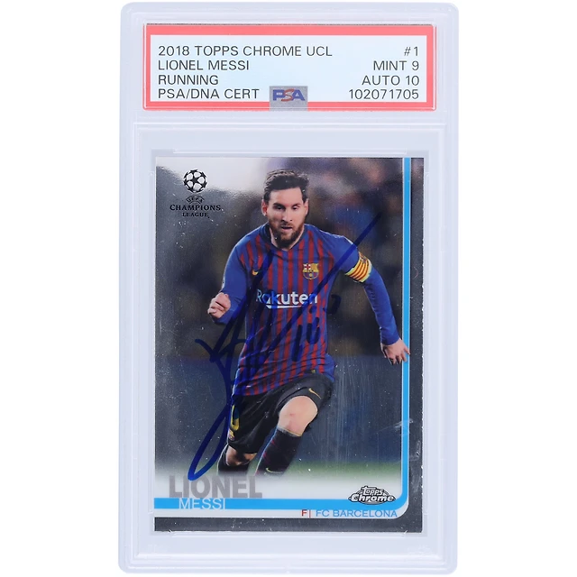 Lionel Messi Barcelona Autographed 2018 Topps Chrome UCL Running #1 PSA Authenticated 9/10 Card