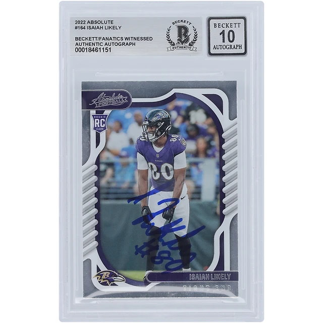 Isaiah Likely Baltimore Ravens Autographed 2022 Panini Absolute #164 Beckett Fanatics Witnessed Authenticated 10 Rookie Card