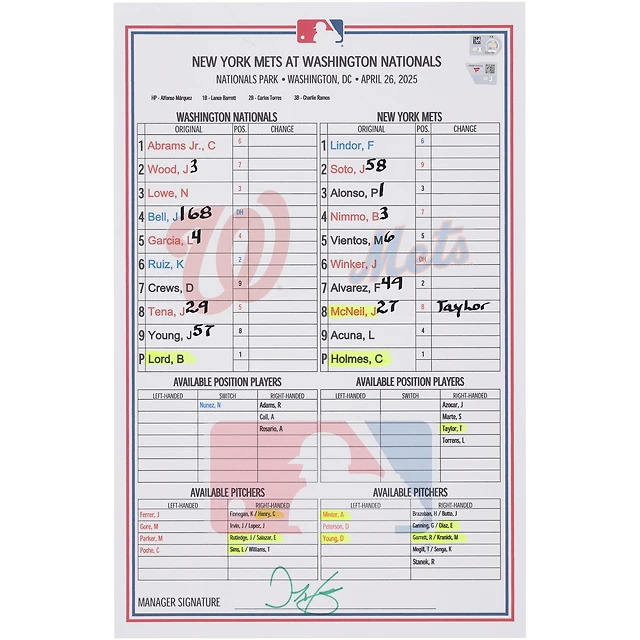 New York Yankees Game-Used Lineup Card vs. San Francisco Giants on April 11, 2025