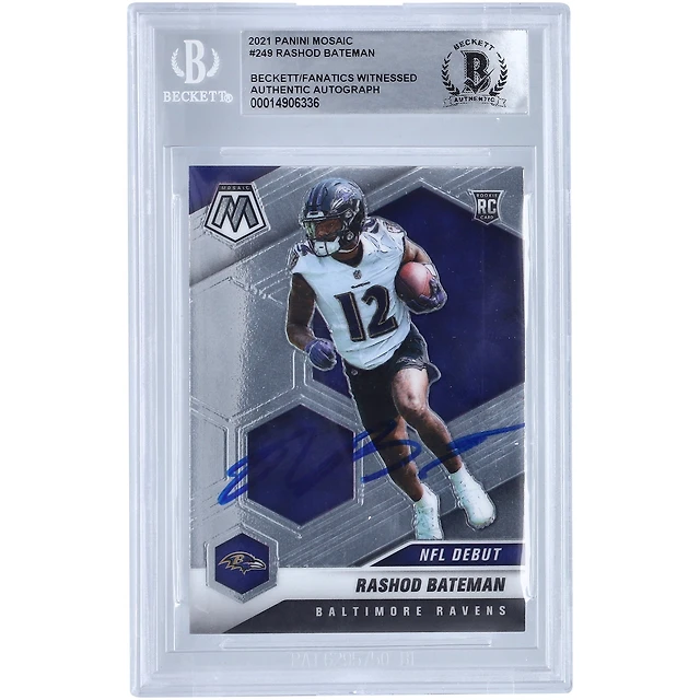 Rashod Bateman Baltimore Ravens Autographed 2021 Panini Mosaic NFL Debut #249 Beckett Fanatics Witnessed Authenticated Rookie Card