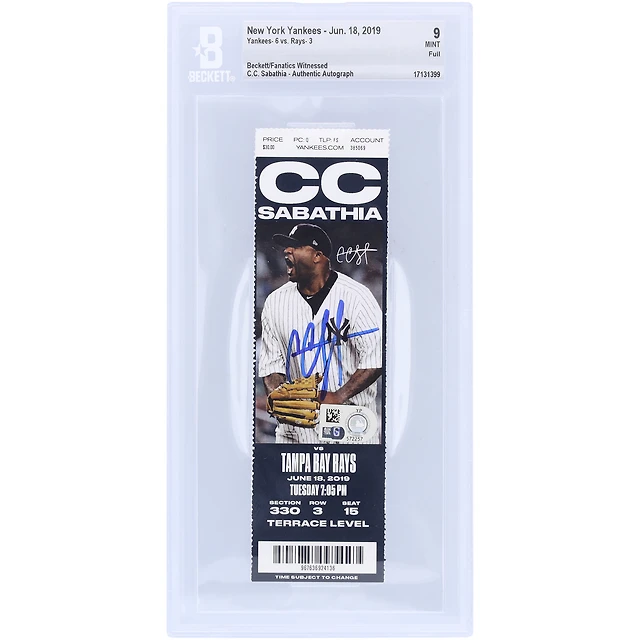 CC Sabathia New York Yankees Autographed Beckett Fanatics Witnessed Authenticated 9 Ticket from June 18, 2019