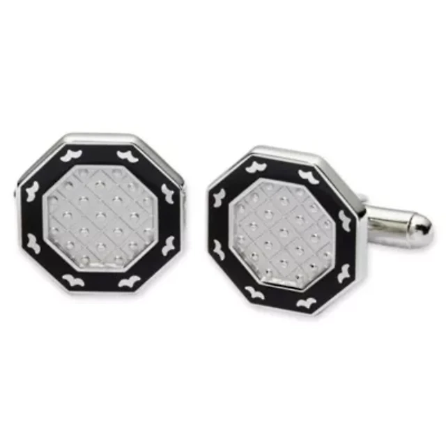 Men's Small Grid Cuff Links & Tie Bar Set
