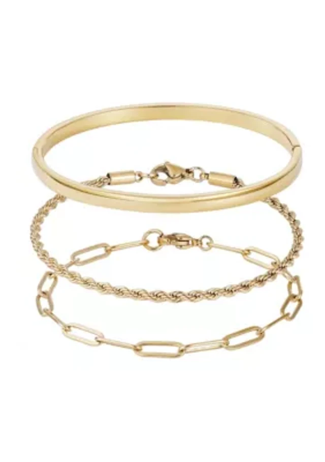 Adornia Tarnish Resistant Gold Cuff and Chain Bracelet Set