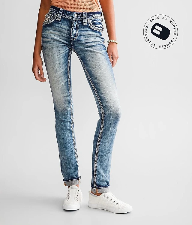 High Roll Mid-Rise Straight Leg Denim Jeans