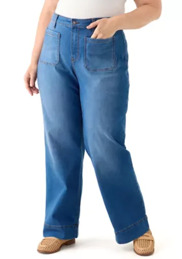 Ruby Rd. Ultra-Soft Denim Rolled Hem Wide Leg Jeans