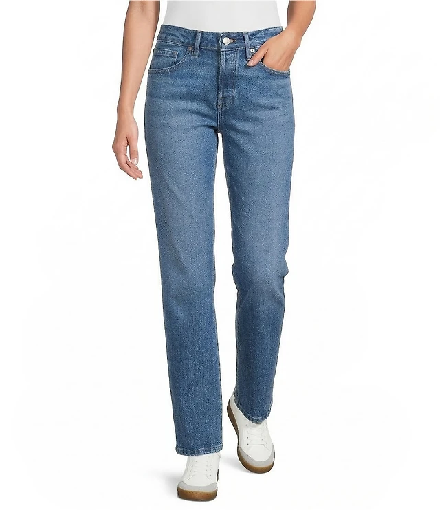 High Waisted Medium Wash Seam Detail Straight Ankle Jeans