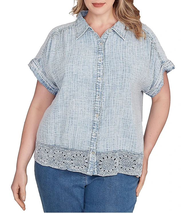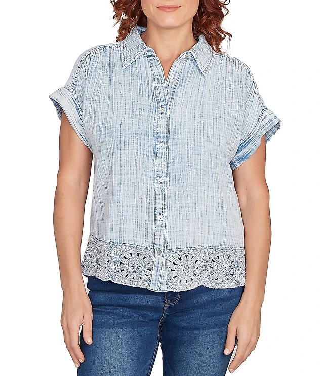 Lauren Ralph Lauren Petite Size Easy Care Point Collar Shirttail Hem Long Cuff Sleeve Shirt