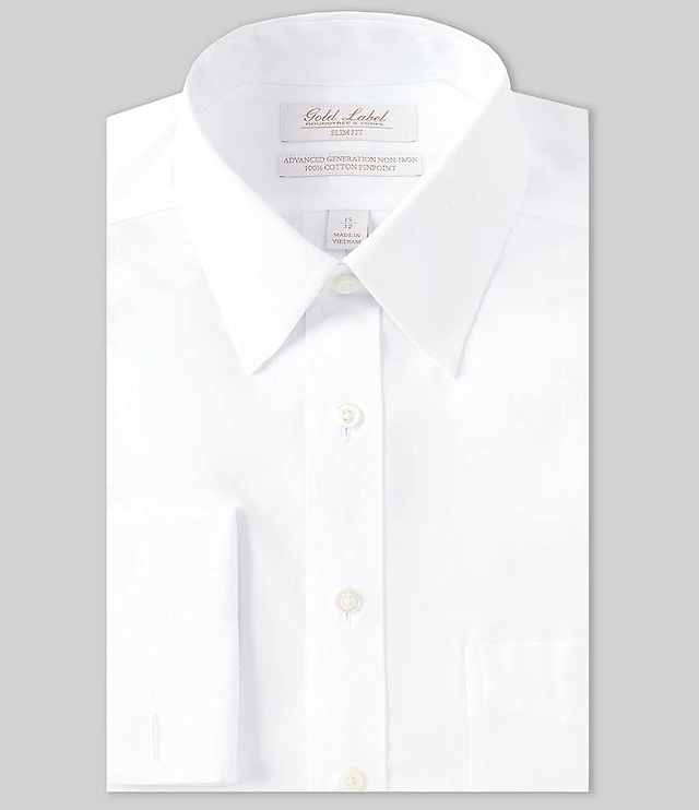 Cremieux Slim Fit Non-Iron Point Collar Mitered Cuff Solid Pinpoint Dress Shirt