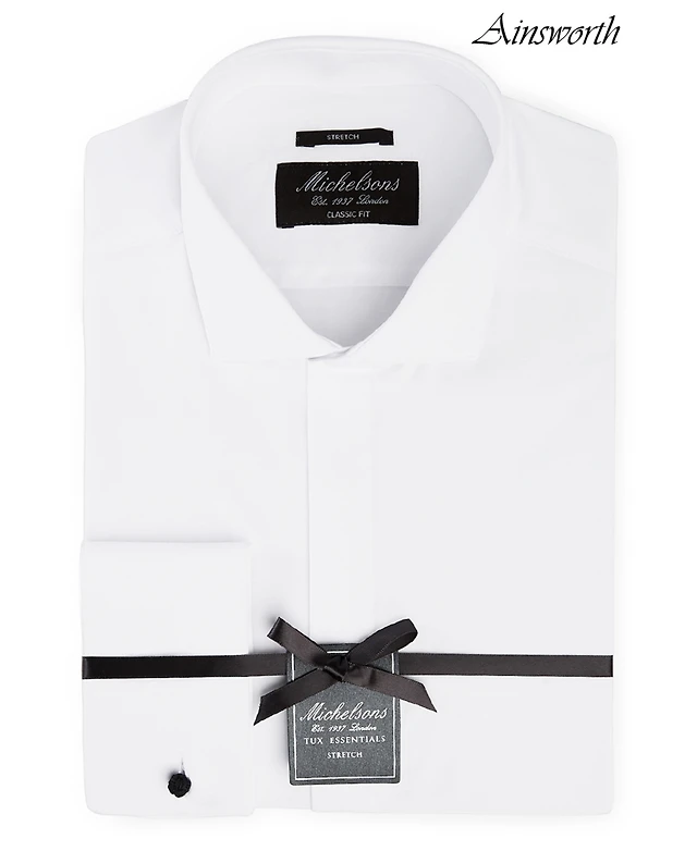 Tre Vero Classic Fit Non Iron Spread Collar French Cuff Poplin Tuxedo Dress Shirt