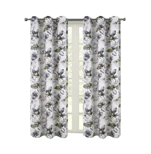 Remi Floral Leaf Print Blackout Grommet Curtain Panel