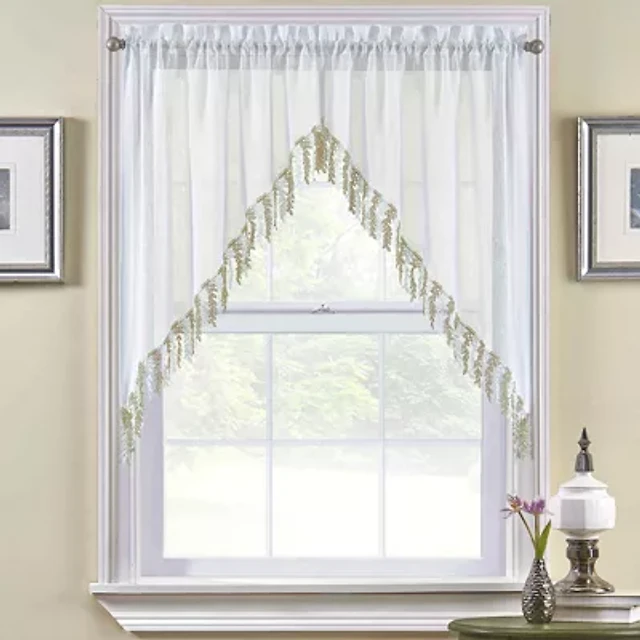 No. 918 Elodie Tonal Botanical Semi-Sheer Rod Pocket Kitchen Curtain Swag Pair