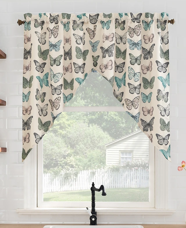 Magdalena Butterfly Print Sheer Rod Pocket Kitchen Curtain Tier Pair