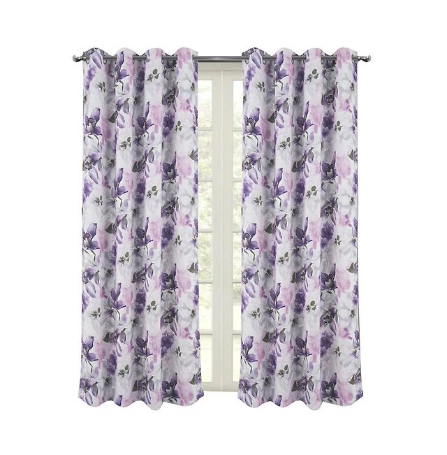 Kate Aurora Montauk Accents Lavender Floral Embellished Complete 3 Piece Kitchen Curtain Tier & Valance Set
