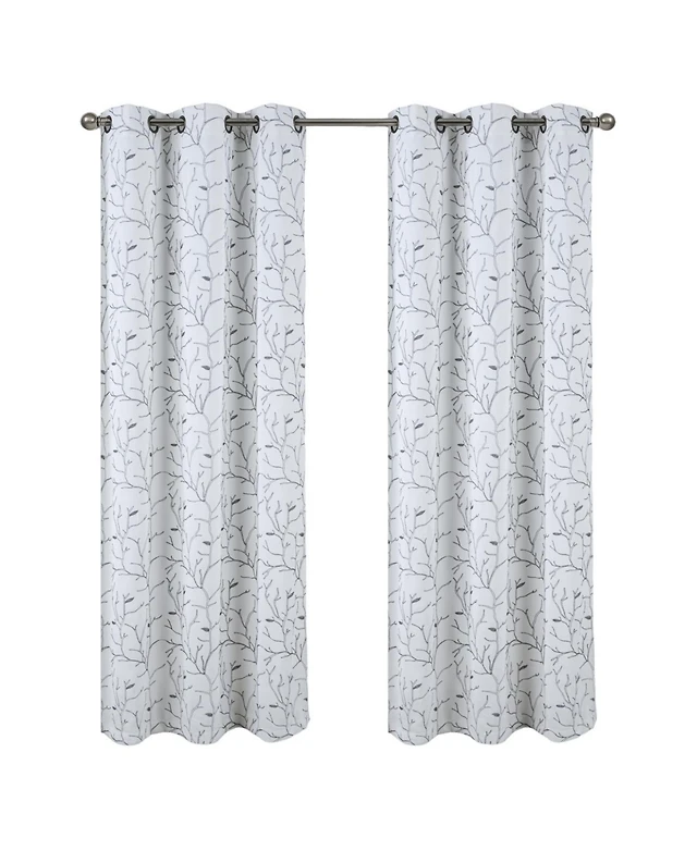 Rt Designer Collection Gable Embroidered Blackout Luxurious Decorative Grommet Curtain Panel 54" x 95" Silver