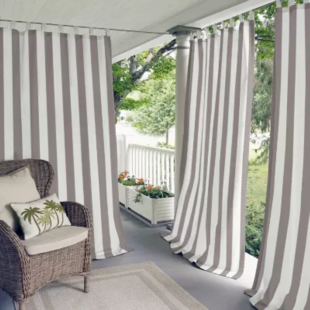 Elrene Home Fashions Highland Stripe Uv 50+ Tab Top Light-Filtering Single Outdoor Curtain Panel