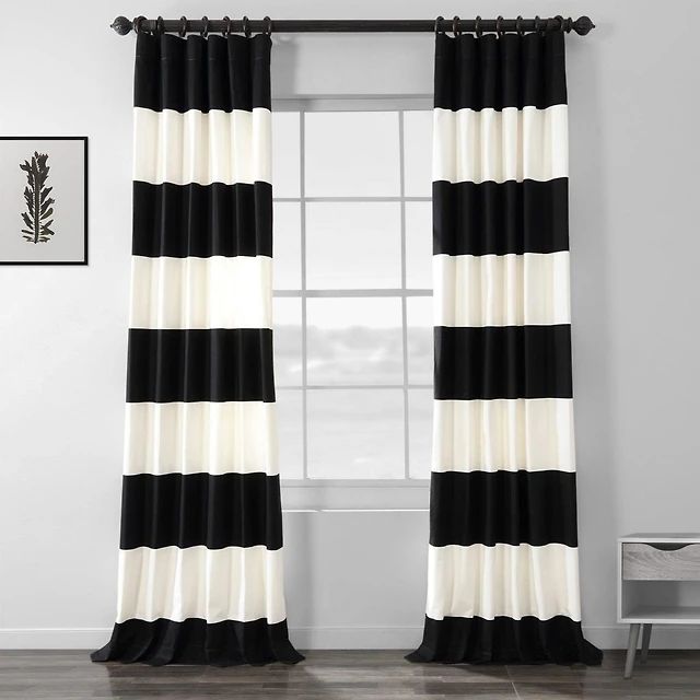 Fieldcrest Devin Flippable Stripe Cotton Chambray Rod Pocket Energy Saving 100% Blackout Single Curtain Panel