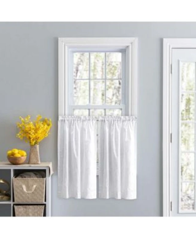 Hlc.Me Sophia Floral Rod Pocket Lace Semi Sheer Voile Short Cafe Tiers For Kitchens Bathrooms Small Windows Set Of 2