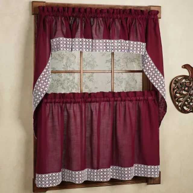 Ellis Lisa Solid Color 1.5" Rod Pocket Poly Cotton Duck Fabric Tailored Tiers 56"x36" Red